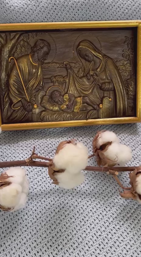 The Holy Family is one of the most popular subjects in Christian art, and this beautiful wooden carved image is a perfect example. The image depicts Mary, Joseph, and the baby Jesus, surrounded by angels. It makes a lovely wall art piece or a thoughtful Christmas gift for someone special. The sculpture can be personalised with an engraving of your choice, making it an extra special gift. The holy family picture is available in five different colors and all sizes.