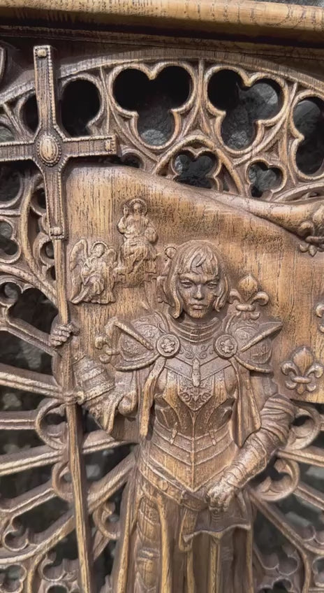 This wooden wall statue is beautifully handcrafted religious wood carving that serves as a remarkable piece of Christian home decor. This is a stunning piece of Catholic wall art that adds a touch of spirituality and elegance to your home decor. It is made in gothic design to emphasize the beauty of details on the background with your wall.