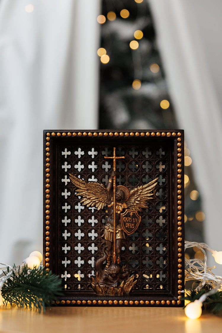 Modern Warrior St Michael the Archangel perfect as handmade wood home decor, it pairs wonderfully with wooden decorative items for living room, enhancing your walls with depth, texture, and devotion. Each design highlights the protective power of Saint Michael, bringing a sense of peace and inspiration to your home.