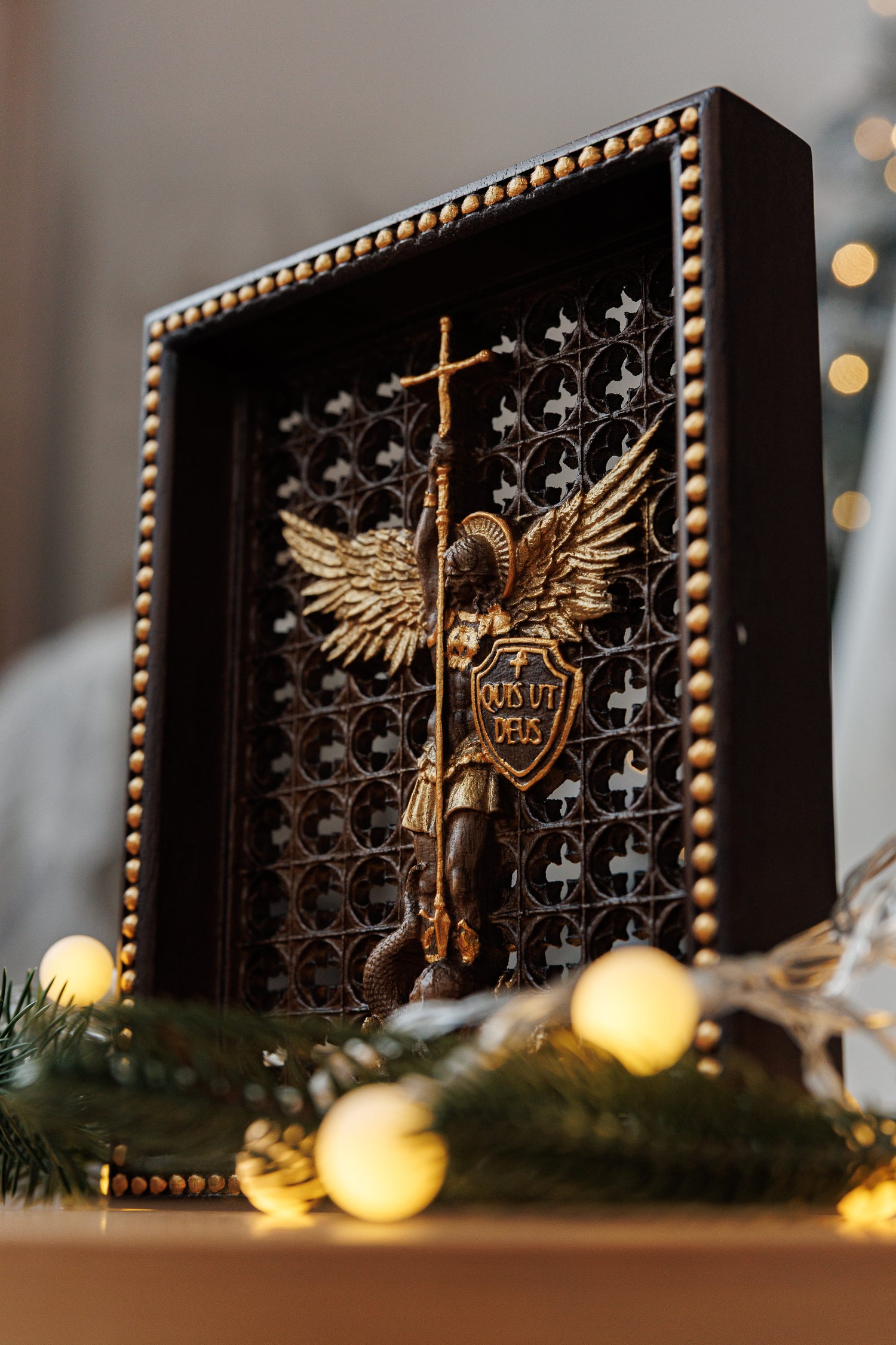 Expertly crafted, this piece works beautifully as an archangel Michael statue or archangel Michael painting, making it a versatile addition to sacred spaces and modern interiors alike. Its detailed wall carving design showcases artisan skill while blending seamlessly with wooden wall decor panels and other wooden wall hanging crafts.