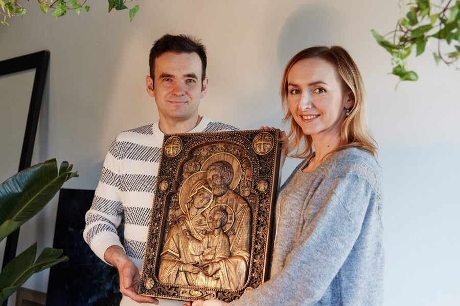 “In 2014 when our first son was born and I was on maternity leave I was inspired by the idea that we can display Maksym’s products for the customers from other countries. I took photos and listed our first religious item on eBay. And what a surprise that it was sold out during the first 24 hours!” - Natalia mentions. At that time, Maksym juggled his craft with a full-time job, often working late nights in their garage. Slowly but surely, KozakWorkshop grew. We expanded to platforms like Etsy, eBay, and Amazon. It wasn’t always easy, but we were energized by the dream of sharing our passion with customers worldwide.