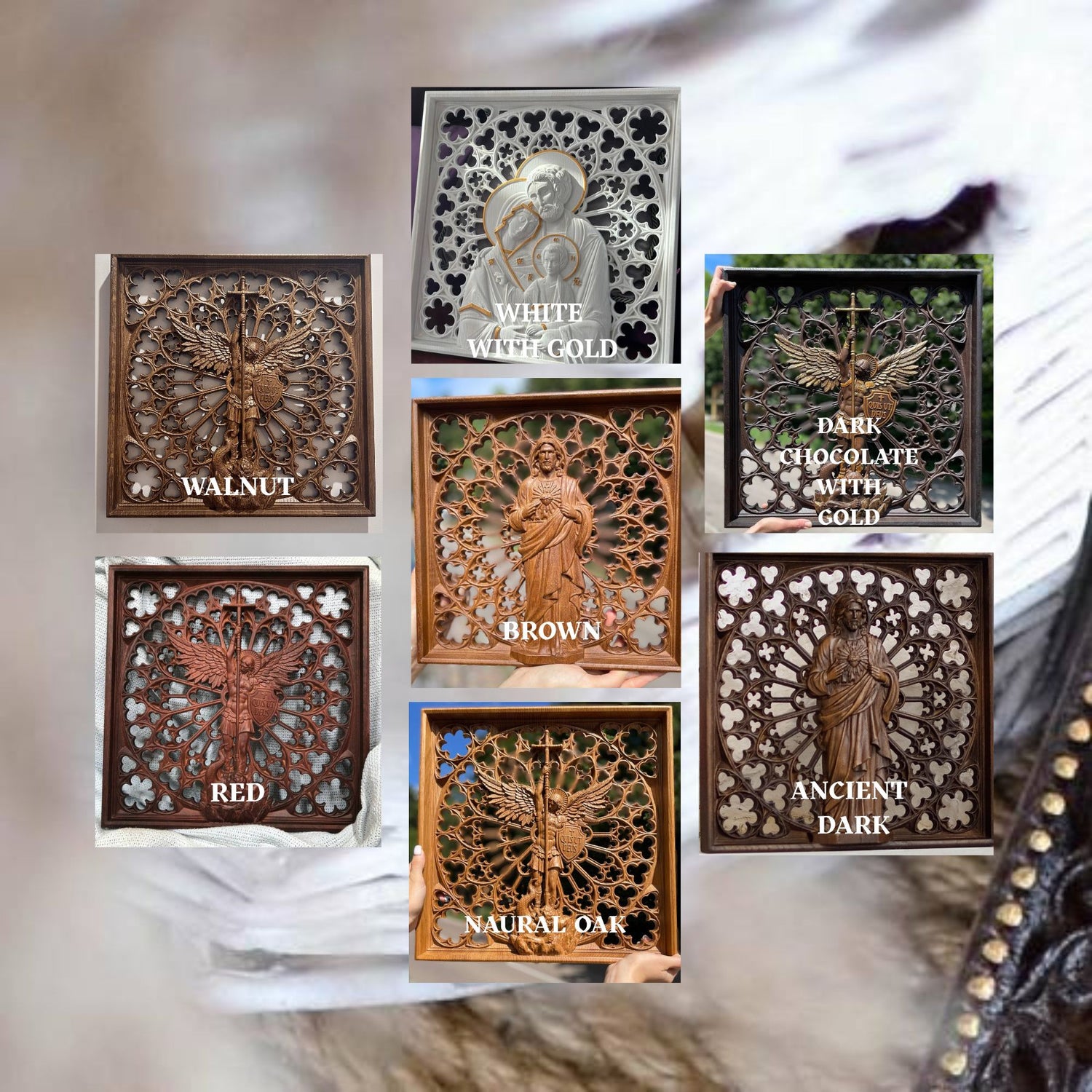 It has been his hobby for a few years until Maksym married Natalia. “We heard compliments about my wooden pieces from our friends and relatives however I did not dare to sell my products” - admits Maksym. “In 2014 when our first son was born and I was on maternity leave I was inspired by the idea that we can display Maksym’s products for the customers from other countries. I took photos and listed our first religious item on eBay. And what a surprise that it was sold out during the first 24 hours!” - Natalia mentions. At that time Maksym worked alone in the garage mostly at night because he had a permanent job. Further Kozakworkshop began to grow. We displayed our products on Etsy, eBay and Amazon. We hunted producers, polishers and painters and were full of energy to develop our small business.