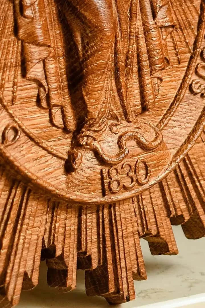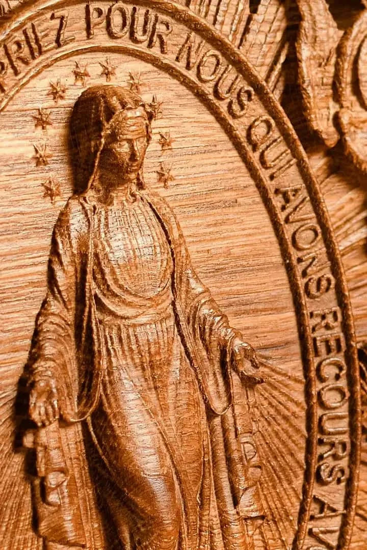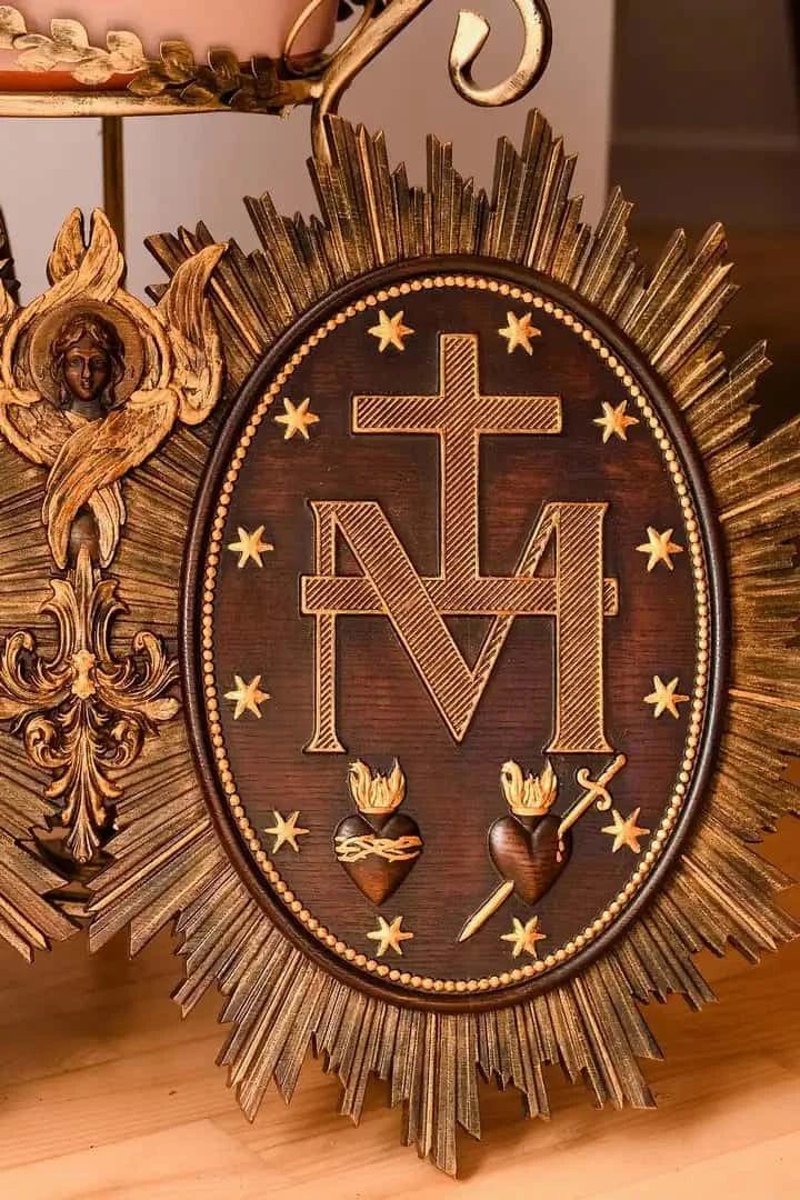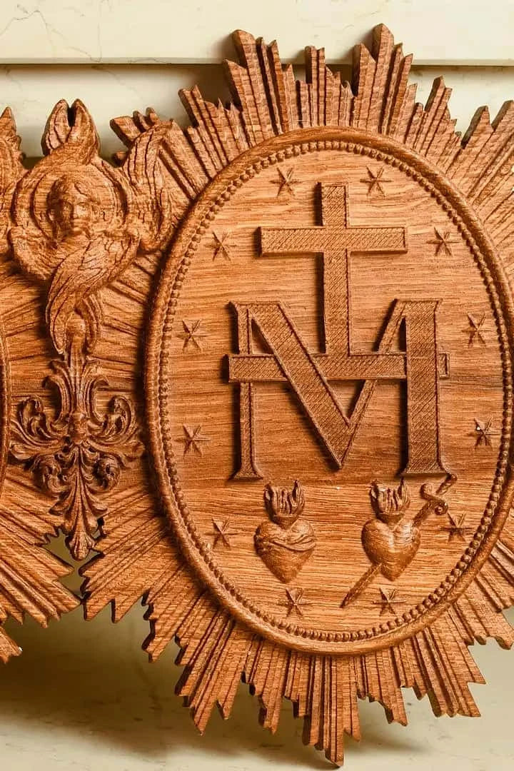 The Christian Miraculous Medal of the Immaculate Conception is a beautiful wall hanging wooden plaque that features the Virgin Mary of Grace. According to Catholic Church teachings, the use of sacramentals like this medal helps prepare people to receive God's grace and makes them more likely to cooperate with it. This lovely piece makes a great addition to any Christian home, and would make a wonderful gift for anyone who is interested in deepening their faith.