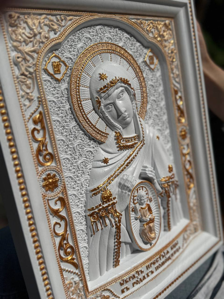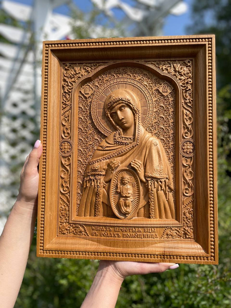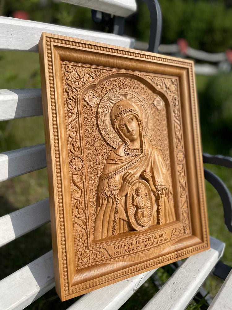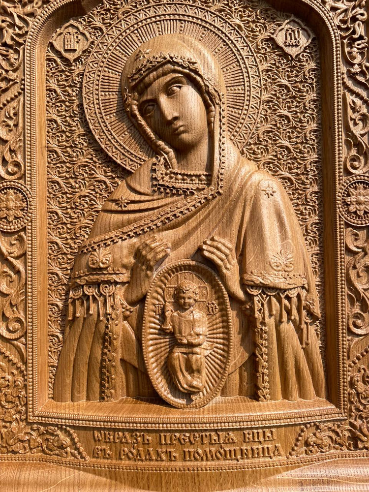 Expertly carved from natural wood in our Ukrainian workshop, the icon features intricate detailing, traditional Orthodox symbolism, and a smooth, satin finish. Ideal for prayer corners, home altars, or as a heartfelt gift for expecting mothers.