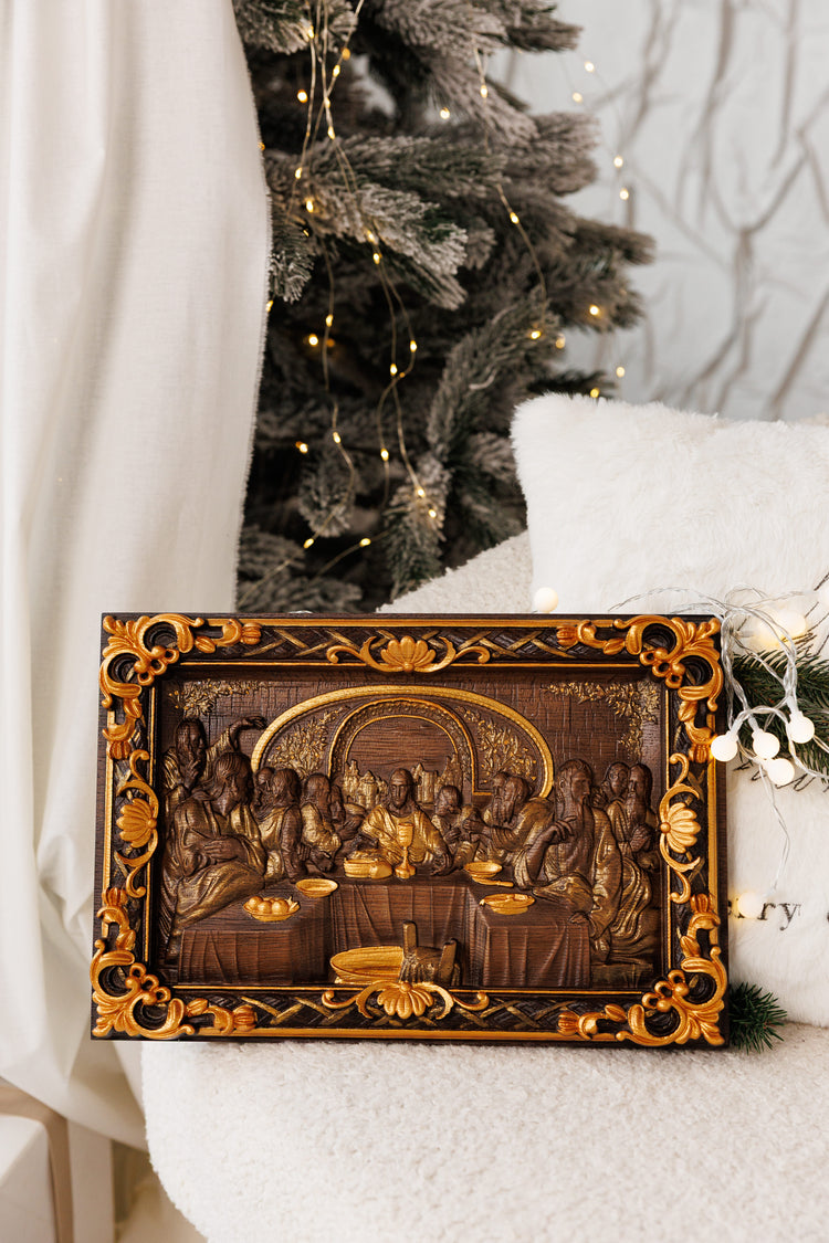 The Last Supper Wooden Sculpture with Baroque Frame