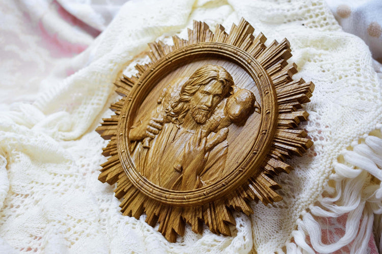 This wooden Christian sculpture of our Our Lord is stunningly crafted from high quality natural solid oak wood. It features incredible attention to detail, with computer-processed sizing and manual tuning for the finest results. The final details are finished by hand and painted with gold color. This gorgeous sculpture makes a perfect addition to any home or office, and is a beautiful way to show your faith. Order yours today!