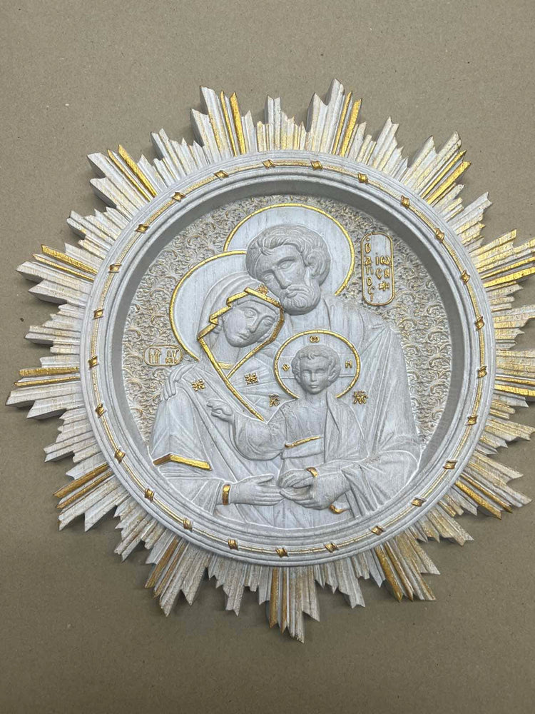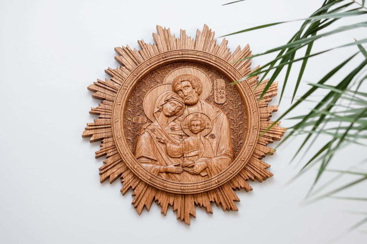This wooden Christian sculpture of our Holy Family is stunningly crafted from high quality natural solid oak wood. It features incredible attention to detail, with computer-processed sizing and manual tuning for the finest results. The final details are finished by hand and painted with gold color. This gorgeous sculpture makes a perfect addition to any home or office, and is a beautiful way to show your faith. Order yours today!