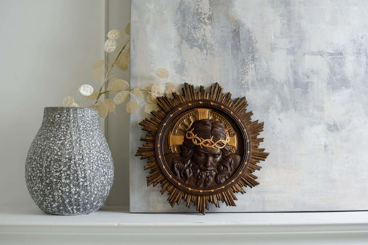 This wooden Christian sculpture of our Lord is stunningly crafted from high quality natural solid oak wood. It features incredible attention to detail, with computer-processed sizing and manual tuning for the finest results. The final details are finished by hand and painted with gold color. This gorgeous sculpture makes a perfect addition to any home or office, and is a beautiful way to show your faith. Order yours today!