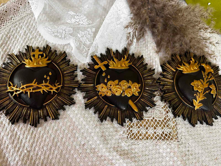 This is a Set of Three separate pieces of Holy Hearts. Size option shows the diameter of one piece. The price is for the Set.
