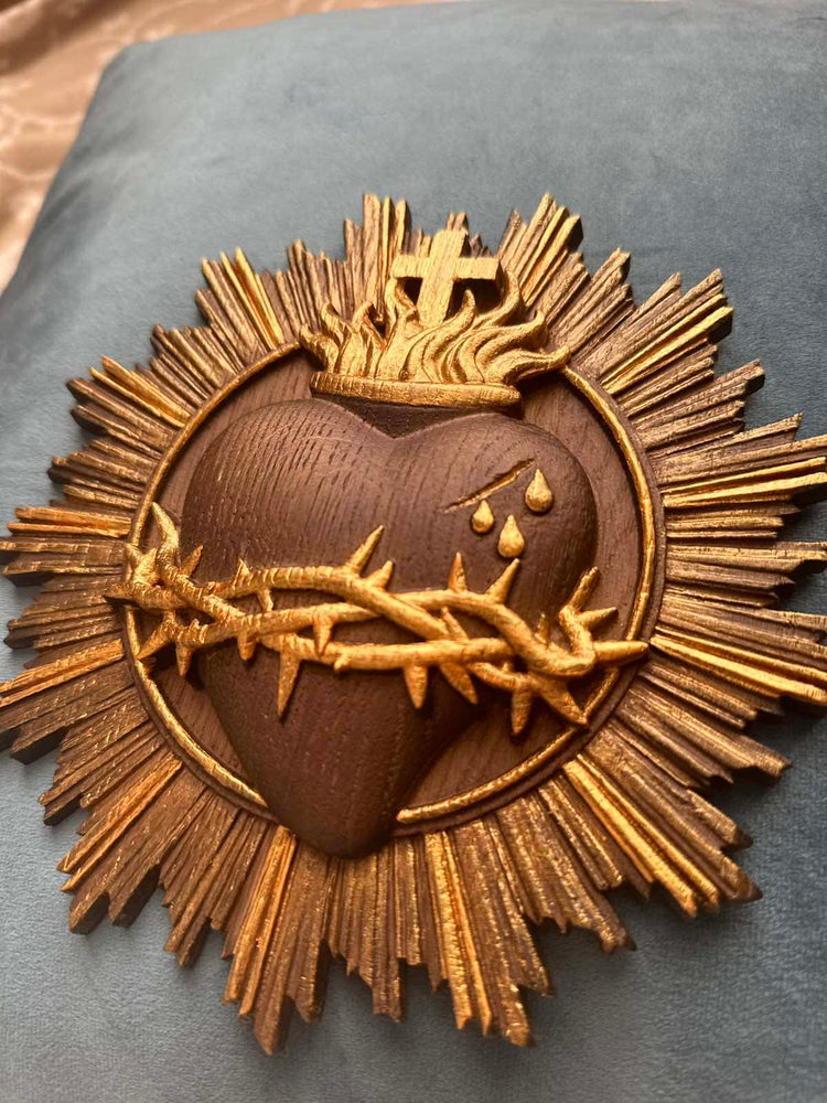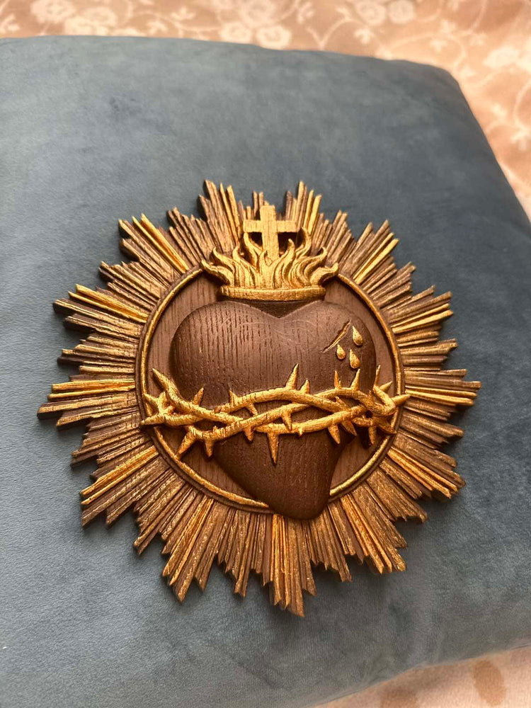 Bring timeless faith and sacred symbolism into your home with our Catholic Three Sacred Hearts wall art. This handcarved masterpiece features the Sacred Heart of Jesus, the Immaculate Heart of Mary, and the Chaste Heart of Saint Joseph — united in a powerful visual reminder of love, sacrifice, and divine protection.