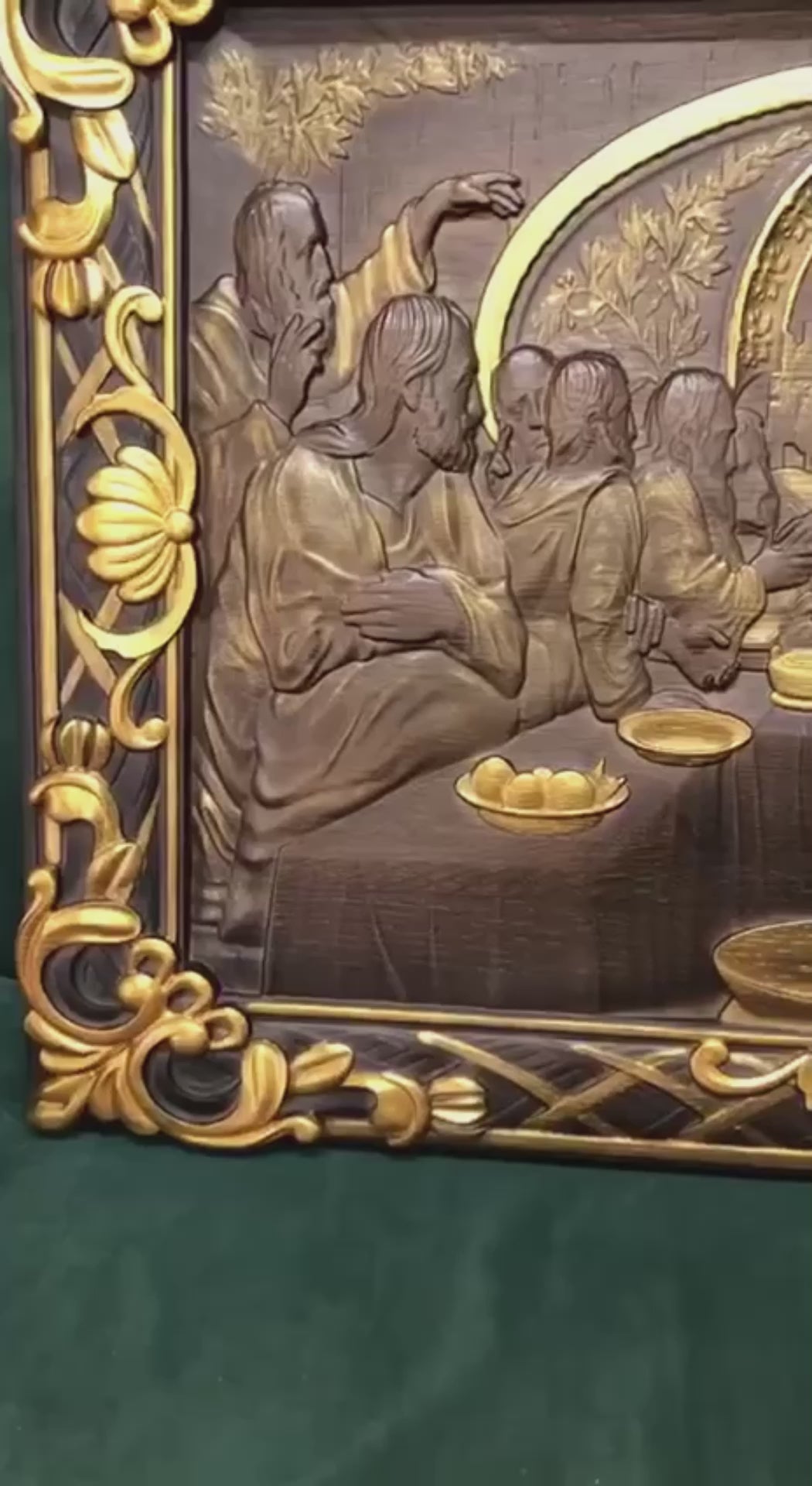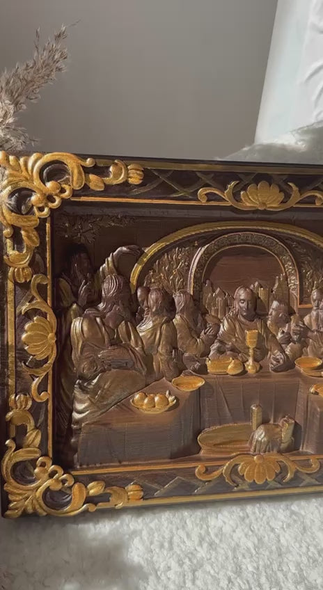 The Last Supper Wooden Sculpture with Baroque Frame