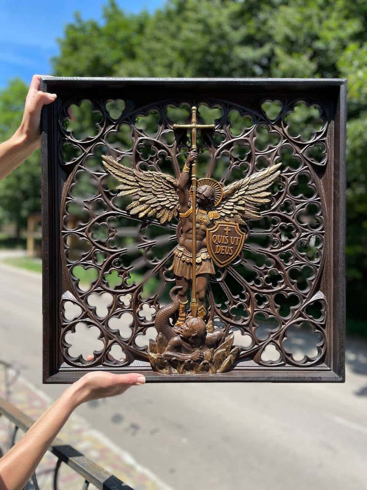 Modern Archangel Michael Wooden Statue