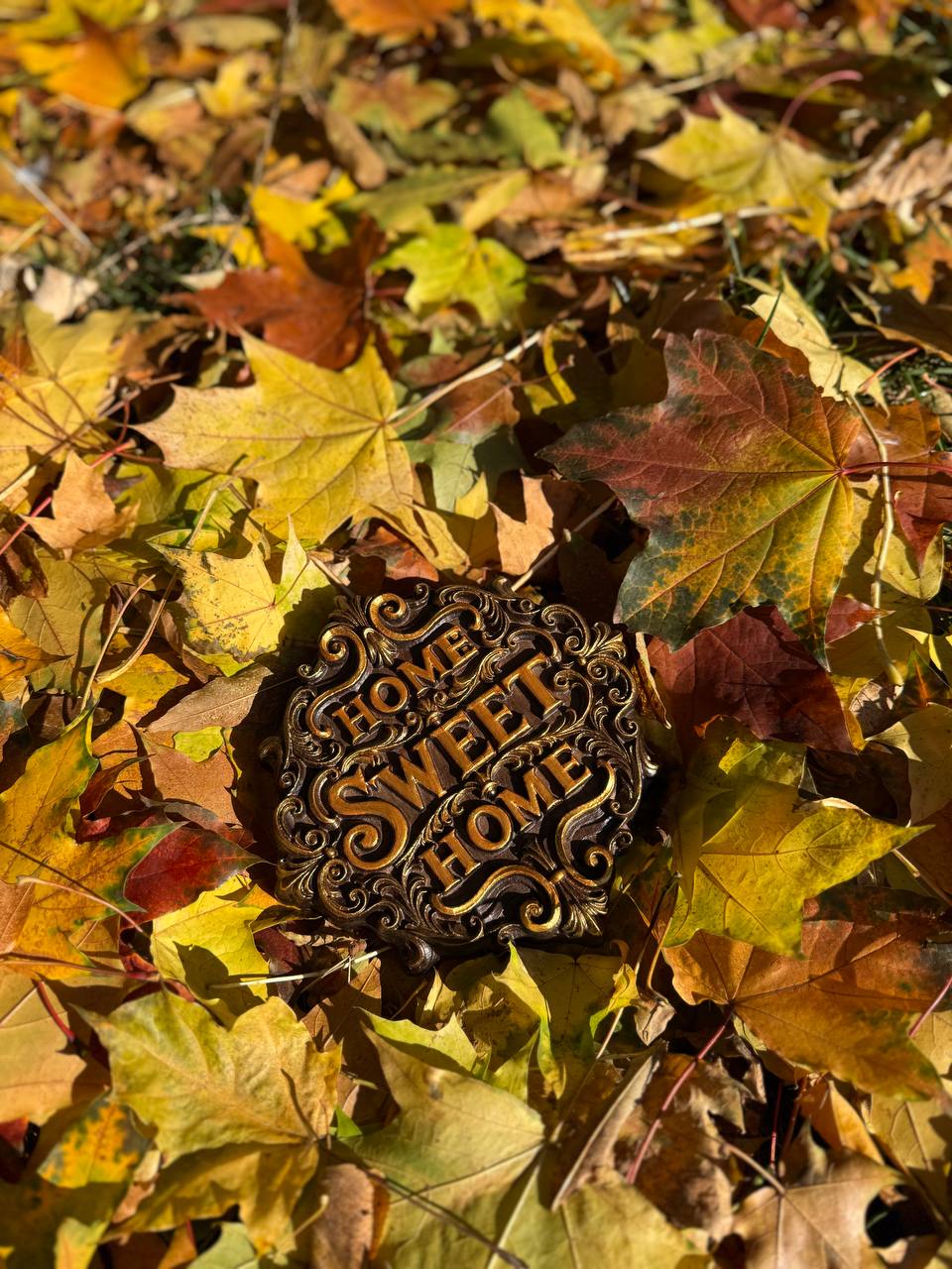 Welcome warmth and comfort into your home with this hand-carved “Home Sweet Home” wooden panel.