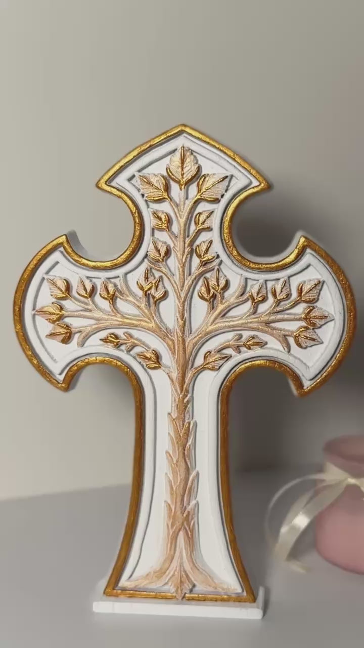 The Tree of Life within the cross symbolizes strong spiritual roots and a living faith that grows through prayer and devotion. This cross brings balance, blessing, and a sense of calm into any space.