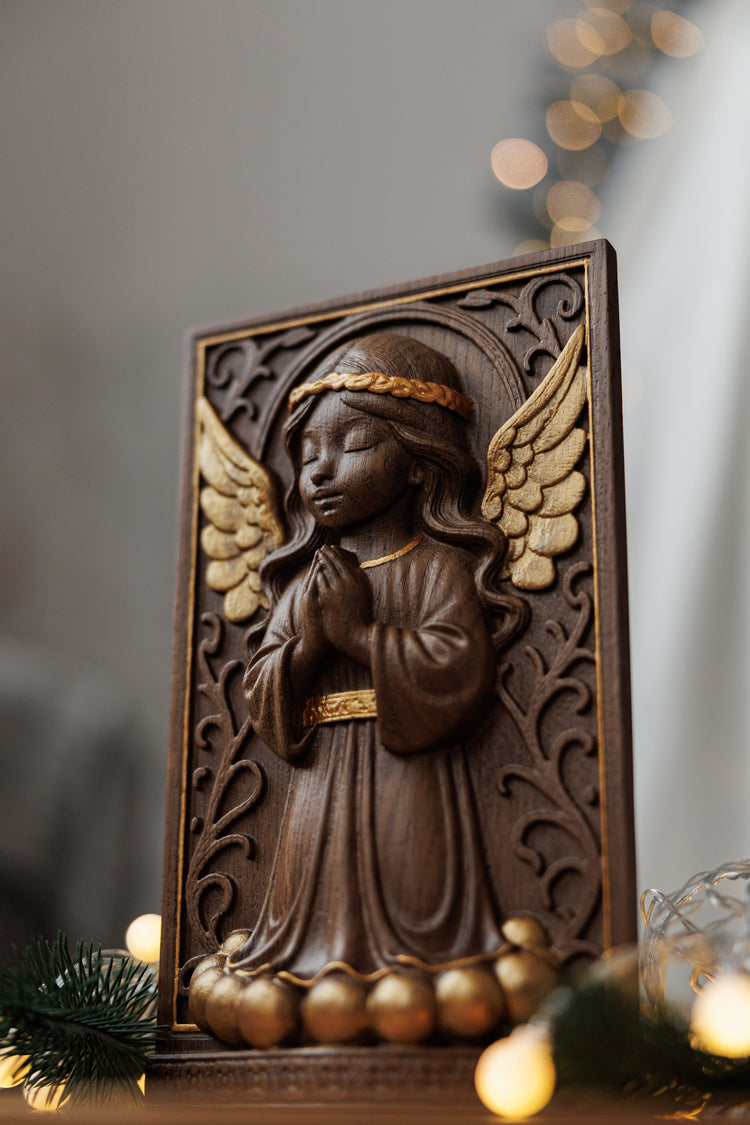 Bring warmth, protection, and faith into your home with this handmade Guardian Angel Icon — a beautifully crafted piece of Christian wood wall art that inspires peace and divine care. Perfectly balancing traditional symbolism and modern design, this wooden carving captures the serene presence of a Guardian Angel watching over loved ones.